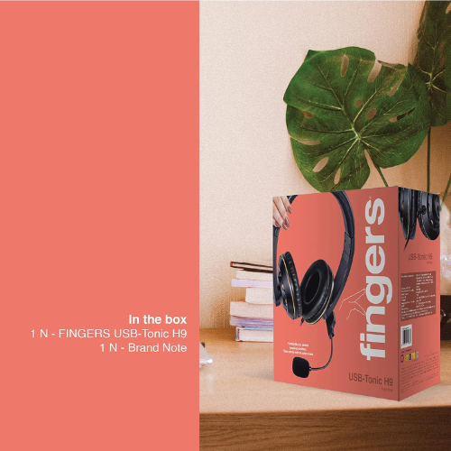 FINGERS USB-Tonic H9 Wired On-Ear Headphones with Adjustable Mic | Crystal Clear Sound | Soft Cushions | Plug & Play USB Connectivity – Black & Gold